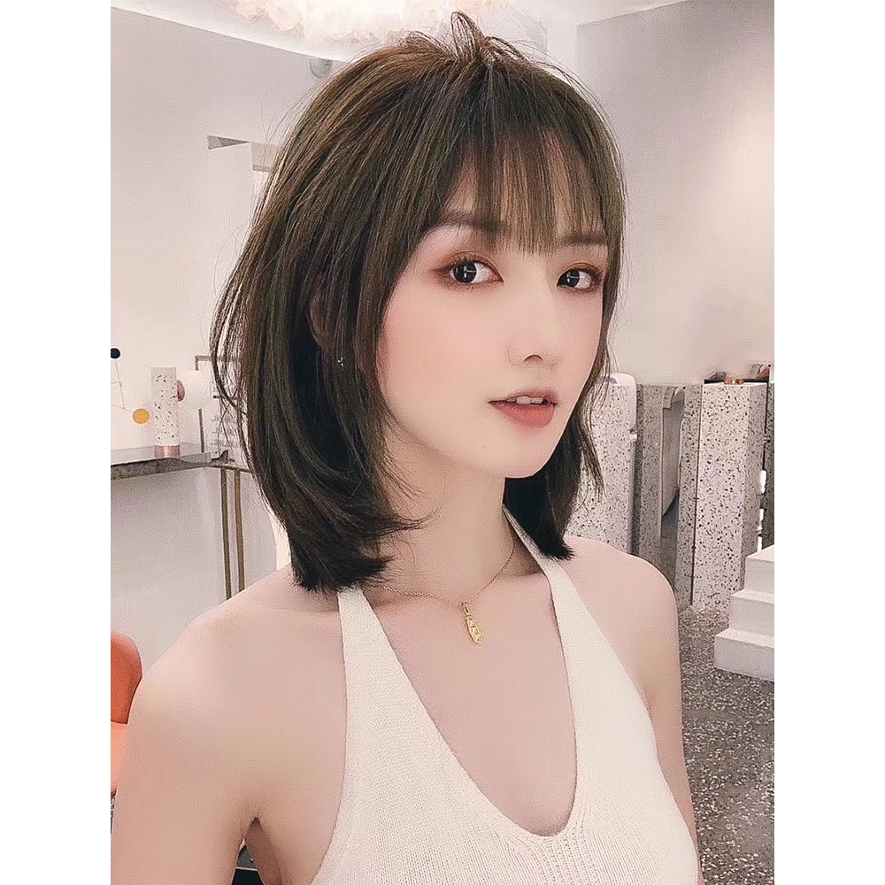 Wig Female Short Hair Net Red Round Face Medium Long Hair Natural Girl Full Head Set Fashion Clavicle Hair Styling Wig Cover Shopee Indonesia